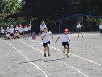 1年生は,一生懸命走っています。でも,まっすぐ走ることが・・・,難しいところもあります。