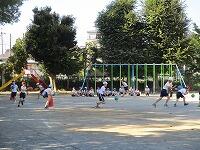 この数日,厳しい暑さが収まっていて,比較的,快適に過ごしていますが,今日は,「真夏日」の予報が・・・。学校では,暑くなる前に校庭や体育館で,体育の学習をしていました。1校時の学習の様子です。