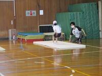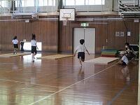 体育館で,4年生が「走り幅跳び」の練習をしていました。日差しが強くならなければいいのですが・・・。