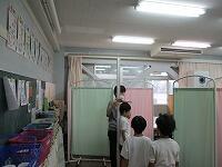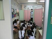 「夏休みの過ごし方は,どうでしたか?」「たくさん遊びましたか?」養護教諭の風見先生が子どもたちに話かけています。「はーい!」と元気な声が返ってきました。1年生は,小学校生活の6年間で,どのくらい背が伸びるのでしょうか? 子どもたちは身体だけでなく,心も大きく成長していきます。これからもずっと,とても楽しみです。