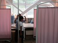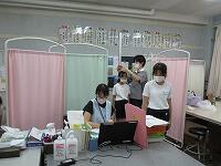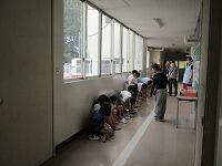 合図があるまで,廊下で静かに座って待っていました。入室して話を聞きました。測定開始です。