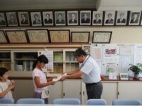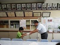 今日は,業間休みに3・4年生が,昼休みに5・6年生が校長室で,2学期の『学級委員任命式』を行いました。3~6年生までの各クラスの学級委員2名が,青木校長先生から「任命書」を手渡されました。青木校長先生は,「2学期は,1学期よりもちょっと長い学期になります。クラスの目標が達成できるように,クラスの代表として担任の先生と一緒にクラスをまとめていってください」と子どもたちに話しました。