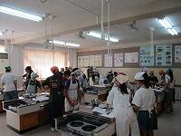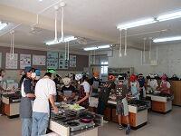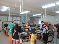 今日は,6年生が家庭科の学習で,『四色野菜炒め』の調理実習をしました。1・2校時に1組が,3・4校時に2組がそれぞれ実習しました。家庭科室をのぞいてみると,6年生は,手際よく作業していました。