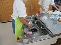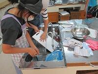 使った用具類を洗っています。野菜炒めのいい匂いがしてきました。