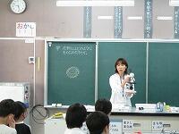 まず,理科教育支援員の説明を聞いて,顕微鏡の使い方を教わりました。接眼レンズと対物レンズが・・・。