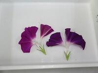 顕微鏡は両手で持ちます。アームの部分と底の部分です。丁寧に扱います。アサガオの花びらです。