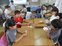 子どもたちは,トランプをしているようなゲーム感覚で楽しみながら自然と英語での会話に慣れていました。