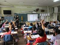 今日は,3年生が『外国語活動』で,「いろいろな考え方に気づこう!」という内容の学習を行いました。絵を見て自分の考えを発表します。毎回,学習を始める前に英語の歌を歌います。