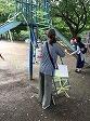 遊具周りのテープを切って