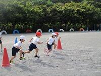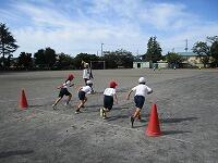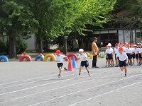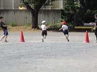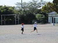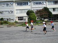 1年生は,一生懸命走っています。でも,まっすぐ走ることが・・・,難しいところもあります。