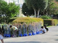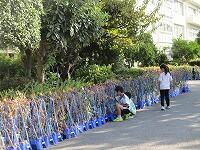 1年生が,毎朝,『アサガオの世話』をしています。きれいに咲いた夏の主役だった「アサガオ」。まだ花の咲いている鉢もあります。「種取り」ができるまで,しっかりと観察しながら世話をしていきます。ありがとう。「アサガオ」さん!