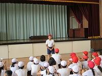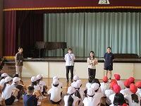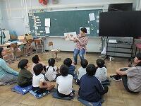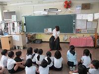 青木校長先生の『読み聞かせ』です。子どもたちは,はじめ,びっくりした様子でしたが,にこにこしていました。