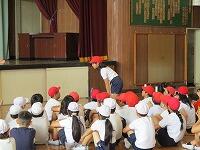 今日から本格的に,「運動会練習」が始まりました。業間休みに体育館で,「応援団」の結団式を行いました。運動会の応援団は,4~6年生で構成され,今年度は,44名が応援団となって,運動会を盛り上げます。明日から,「朝練習」も始まります。今日は,応援団の「顔合わせ」と「自己紹介」をしました。そして,「応援団の極意」について,応援担当の先生から話がありました。