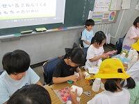 最初は緊張していた1年生の顔も,2年生の「いらっしゃいませー」「こっちであそぼー」の元気な声に自然と笑顔が溢れ,楽しく遊んでいました。