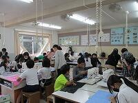 今日は,一昨日の5年1組に続き,3組が家庭科の学習で,『初めてミシン』を使いました。要領を覚えて慣れるまでが大変です。はじめは不安な気持ちでいっぱいですが,できるようになると,面白くて気持ち良いものです。わからないところは,保護者や学習支援ボランティアの方にサポートしていただいています。毎回とても助かります。
