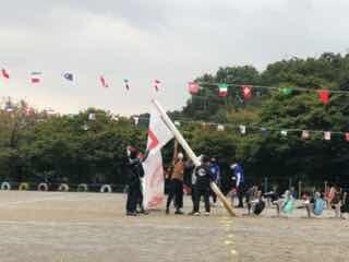 6年生の記念撮影が終わるのを待って、運動会会場を華やかにしていた万国旗も外されました。