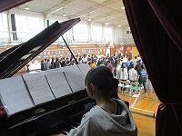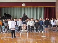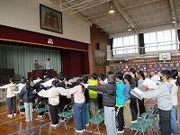 音楽室での練習とは,かなり違うようです。眉を上げて,しっかりと声を出して歌います。