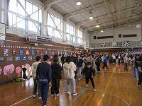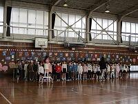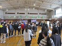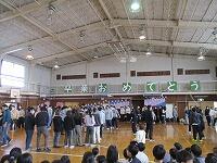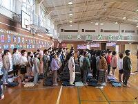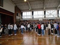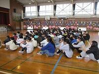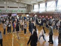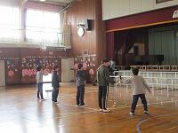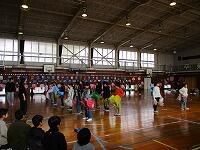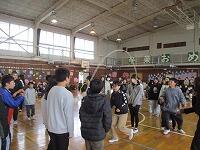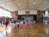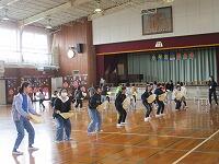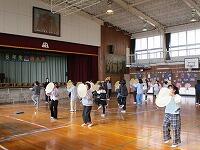 体育館は,保護者の方でいっぱいでした。はじめは,長縄跳びの「8の字跳び」です。3回戦行います。