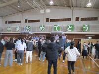 子どもたちだけでなく,後方では,保護者の方も練習を始めました。