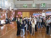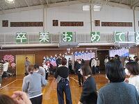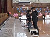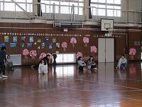 3年生が,「花のアーチ」の準備をしています。6年生の退場の準備ができました。