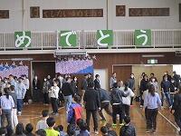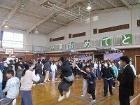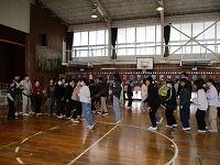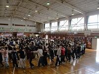 だいぶ列(列車)が長くなってきました。最後に勝ち残った人は,・・・4組の女子でした!おめでとう!