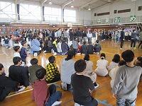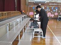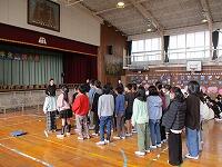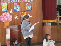 今日の『6年生を送る会』の練習の様子です。いよいよ,明後日が「送る会」本番となりました。今回は,1年生と4年生の練習の様子をお知らせします。