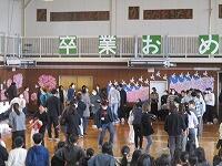 体育館のステージ上には,「6年生を送る会」と書かれた横看板が設置されました。