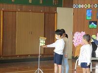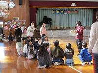 「劇」の練習をしています。楽器のきれいな音色が聞こえてきました。「おおきなかぶが,なかなか抜けません」