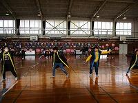子どもたちが練習をしています。1回戦目は,子どもたちが跳びます。