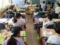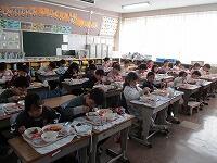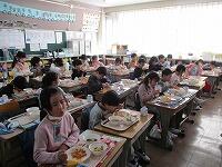 今年度の給食もあと6回となりました。今日は,『1年生の給食の様子』をお知らせします。今日の給食は,6年生のリクエストメニューの「オムライス」です。ケチャップで,シートエッグに好きな絵を描いて食べます。何を描こうか迷っている子も・・・。楽しみながら食べるとさらにおいしいですね。