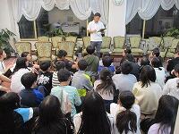 今日の反省点,明日の日程の変更点や注意事項を確認しています。