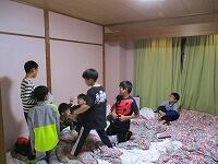 リーダー会議と部屋ごとの反省会の様子です。今日一日を振り返っています。子どもたちは,みんな元気に過ごしています。