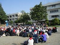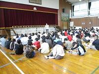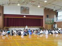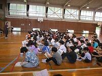 5校時に、体育館で「決起集会(対面式)」を行いました。