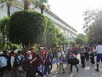 出発前の様子です。「行ってきます」朝早くから子どもたちを見送っていだだき,ありがとうございます。