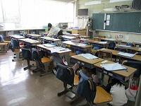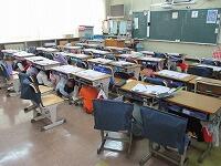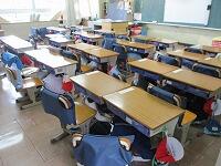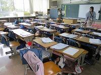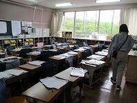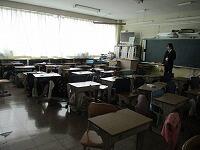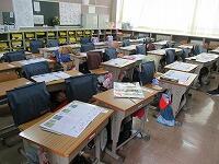 教室での『第1次避難』の様子です。「緊急放送」が流れると,子どもたちは素早く机の下に潜り込みました。