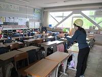 今日は,全校で4校時に『避難訓練』を行いました。新学年になって『初めての訓練』です。1年生にとっては,小学校に入学して初めて行う『避難訓練』です。今回は,「大きな地震が発生したという想定」です。「避難の仕方」と「避難経路の確認」が主なねらいですが,あいにく雨が降っていて,外への避難は行いませんでした。延期です。『第1次避難』の教室の中で『机の下に入る避難』の練習を行いました。