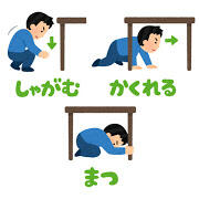 「シェイクアウト」です。安全確保行動1-2-3「まず低く,頭を守り,動かない」を身につけるものです。