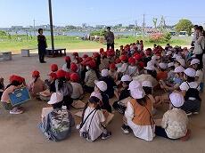 午後は,車窓見学と「道の駅しょうなん」を訪れました。バス車内からは,十余二工業団地を見学し,いつまでも続く工業団地に子どもたちは,驚いていました。「道の駅しょうなん」では,きれいな店内に入り,売っているものを調べました。野菜だけではなく,花やパン,ドレッシングや本などさまざまな種類の売り物に興味津々でした。子どもたちからは,「今度は家族で来よう」という声も聞こえ,関心をもって調べている様子が伝わりました。店内を見た後は,スタッフの方に道の駅しょうなんについて詳しく教えていただきました。