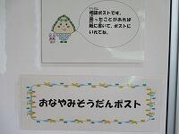 次に,「教育相談」についてです。「教育相談」担当の先生から「悩むことがあったら,一人で抱え込まずに相談することが大事です」という話がありました。また,校内の「お悩み相談ポスト」の設置についても確認しました。