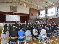 「あいさつをしっかりと返してくれる人とそうでない人がいます」という声が聞こえました。「まずは,自分たちから・・・」お昼の放送でも『あいさつ運動』について,また,日頃の「あいさつ」について呼びかけています。