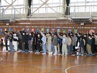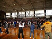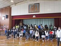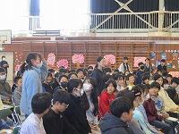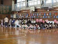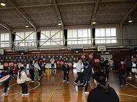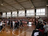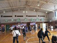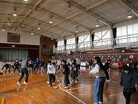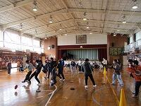 今日は,昼休みに体育館で5年生が,『体育委員会主催レク』を行いました。今月の生活目標は,「寒さに負けない強い体をつくろう」です。寒くても積極的に体を動かすようにという思いで,体育委員会の子どもたちがレクリエーションを考えました。準備もルールも簡単で,楽しめるものです。学年ごとに,日にちを決めて行います。今回は5年生で,4回目になります。ルールは,四角で囲まれた外側から,内側にいる体育委員会の人をソフトフリスビーで当てるというものです。4ゲーム行い,当たった回数をもとに競い合います。ソフトフリスビーをキャッチできたら,セーフです。