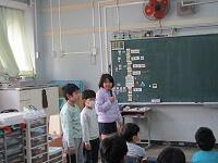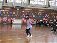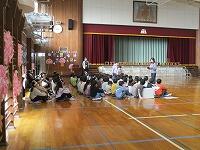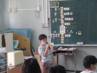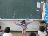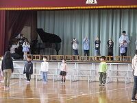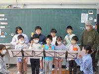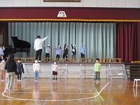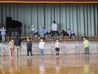1年生が,音楽の学習で『歌詞に合わせて』,振付けをしていました。大きいものや小さいものなど,体を使って嬉しそうにかわいく表現していました。曲名は,「はる なつ あき ふゆ」です。
