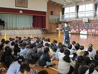 終わった後,スタッフの方が,「今日の水泳学習はどうでしたか」と問いかけると,「楽しかった」「お腹が空いた」という感想が返ってきました。「まだ,この後も授業があると思うので,頑張ってください」「4年生になって,また一緒に水泳ができるのを楽しみにしています」と話されました。