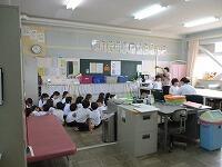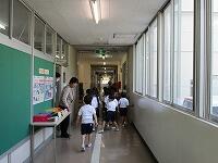 今日は,1年生が小学校に入学して,『初めての発育測定』を行いました。会場は,保健室です。保健室に入るのも初めてです。初めに測り方について,養護教諭の話を聞きました。「体重計には,そっと,静かに乗ってじっとしていてくださいね」