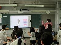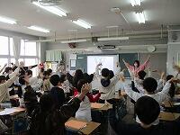 2組は,外国語活動で音楽に合わせて楽しく踊っていました。