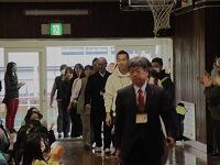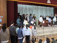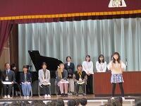 児童会と歌声担当者の振り返りです。退場の様子です。