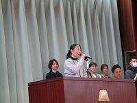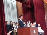 学校ボランティアの代表の方が,青木校長先生の先導で入場してきました。
