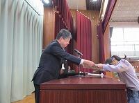 「校長先生の話」の後,学校ボランティアの皆さんに,感謝状と手紙を渡しました。