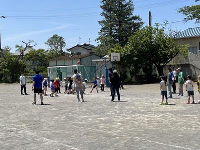 おやじの会のみなさんと先生方は、いっしょにゲームに参加して盛り上げていました。