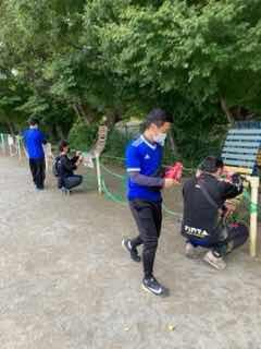 児童用の通路、保護者の観覧席、遊具を使用できないようにするためのテープや、テープが張られていた杭などがどんどん外されていきました。